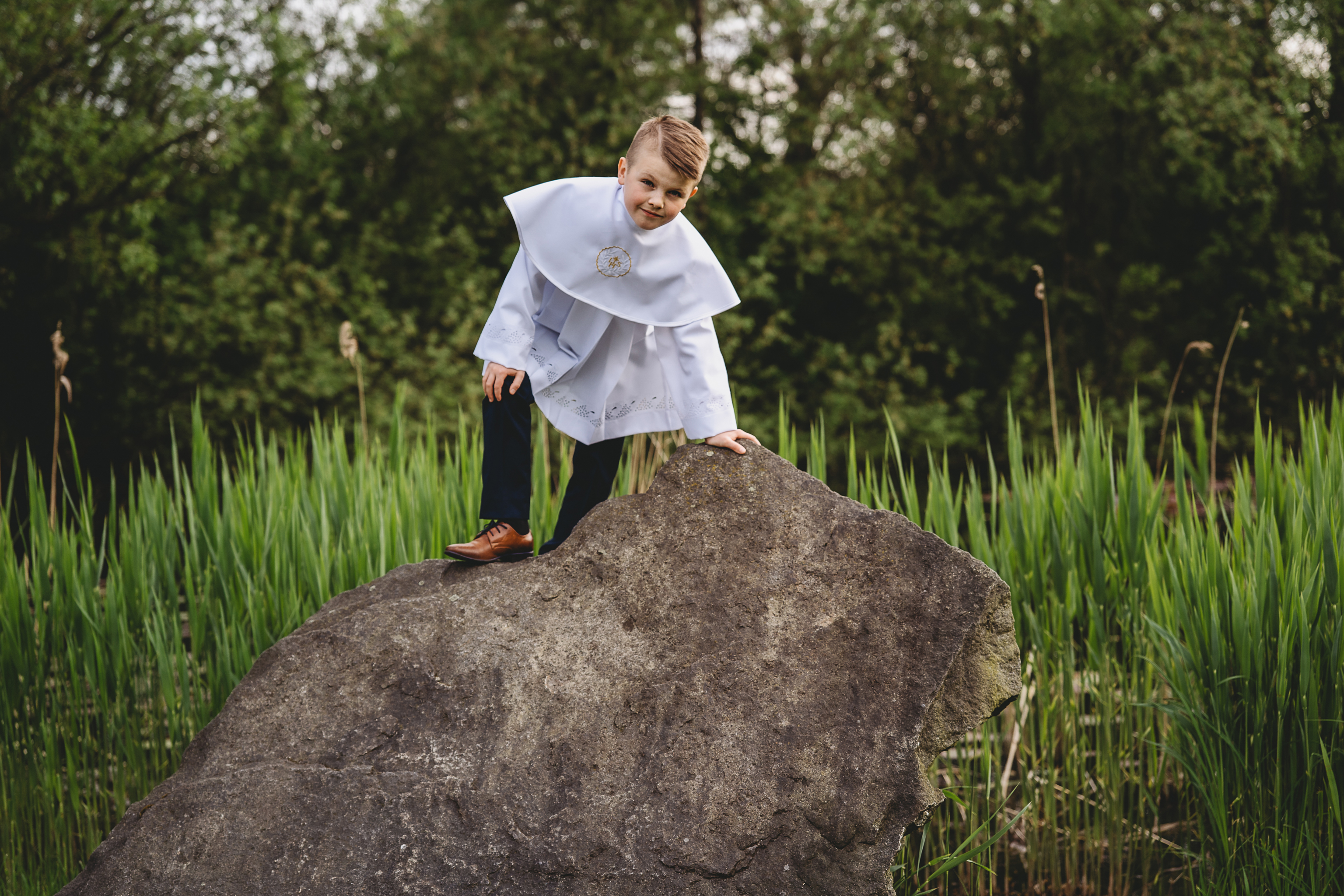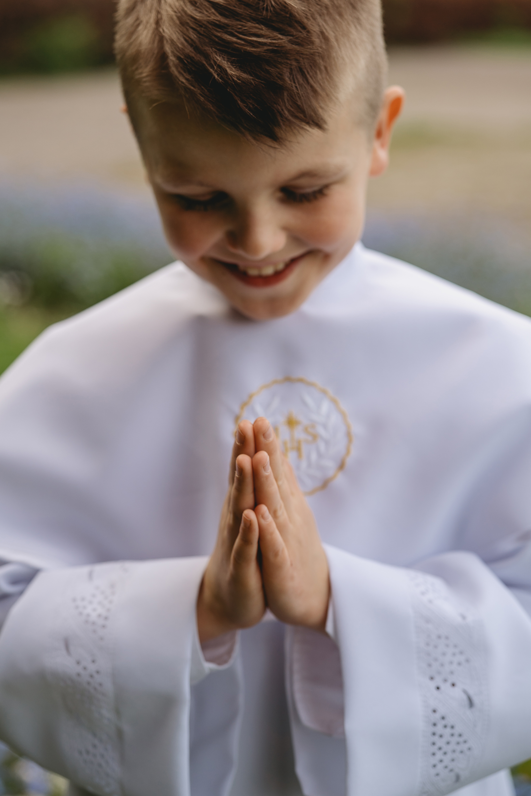 Komunia Szymona - sesja rodzinna w plenerze